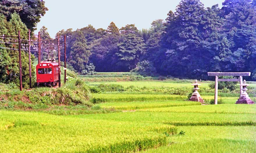 〔 近鉄北勢線 楚原~上笠田 護国神社の前を走る! ” モ270形276 ” S.55.6.7 撮影 〕