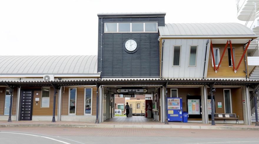 〔 くま川鉄道 あさぎり駅 駅舎は免田町商工コミュニティーセンター「ポッポー館」との合築! R. 5. 4. 4 撮影 〕