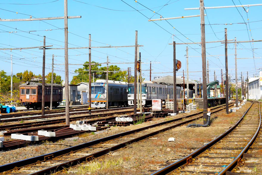 〔 熊本電鉄 北熊本駅に隣接車両基地 左から モハ71 ・1000形(元・静岡鉄道)・03形(元・東京メトロ・日比谷線) 〕
