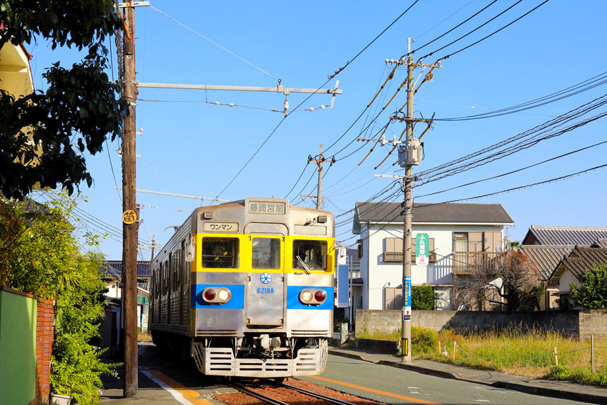〔 熊本電鉄 黒髪町~藤崎宮前 ハイライト区間の併用軌道を往く! 6000形 6211A‐6218A 藤崎宮前行き 〕