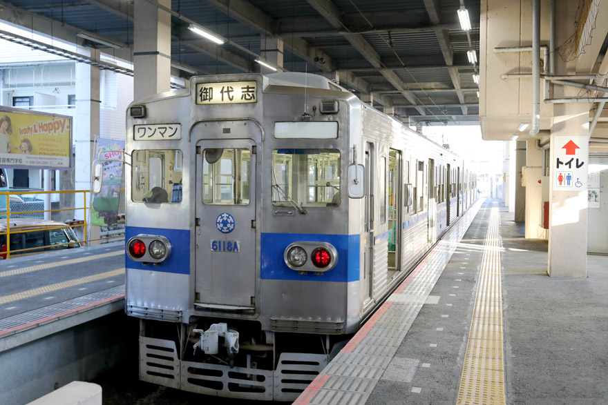 〔 熊本電鉄 藤崎宮前駅 発車を待つ! 6000形 6111A- 6118A 御代志行き R. 4. 11. 28 撮影 〕