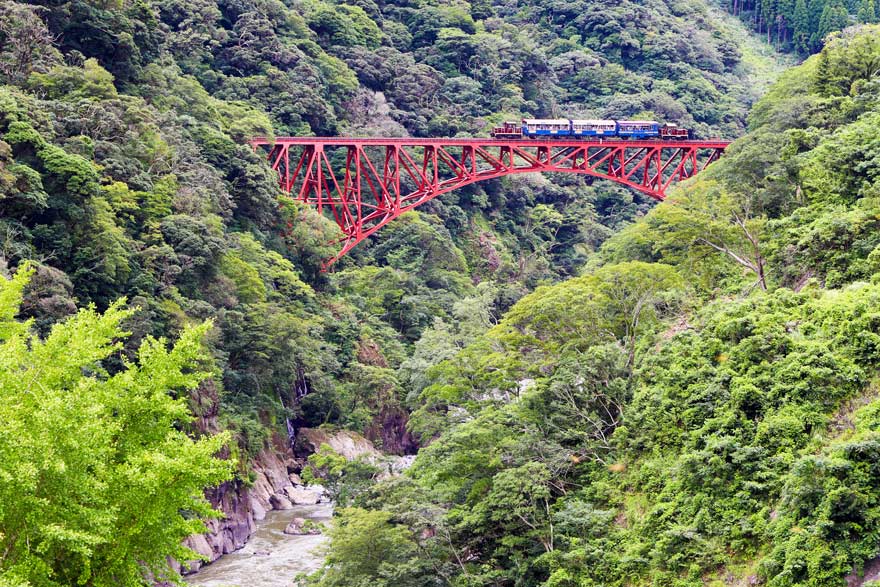 〔 南阿蘇鉄道 完成当時、水面からの高さが日本一であった第一白川橋梁を渡る! トロッコ列車 「ゆうすげ号」〕