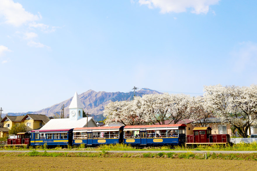〔 南阿蘇鉄道 阿蘇山をバックに桜と菜の花がコラボの阿蘇白川駅を往く! R. 5. 4. 3 撮影 〕