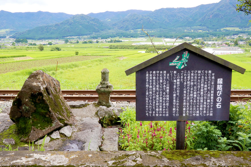 〔 南阿蘇鉄道 阿蘇下田城駅 線路脇にある 縁結びの石と男性を表している石灯籠。 R. 5. 8. 23 撮影 〕