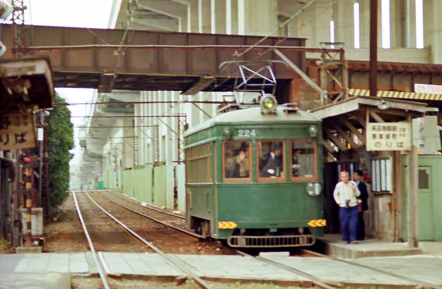 〔 南海電鉄/平野線 股ヶ池駅にて 国鉄阪和線の高架を潜る! 恵美須町行き ” モ205形224 ” S.55 撮影 〕