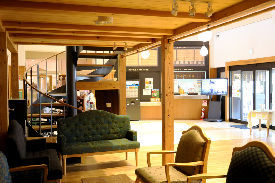 〔 肥薩おれんじ鉄道 阿久根駅 阿久根付近で伐採された木がふんだんに使われており地域の人々が集う憩いのスペース! 〕
