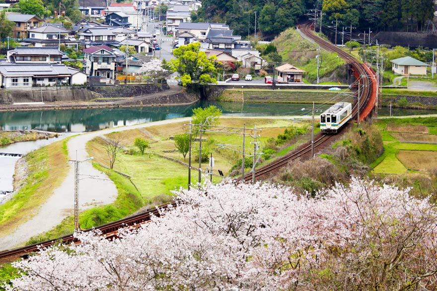 〔 肥薩おれんじ鉄道 新水俣~水俣  眼下に桜満開のなかを往く! HSOR‐109A 新八代行き   R. 5. 3. 30 撮影 〕