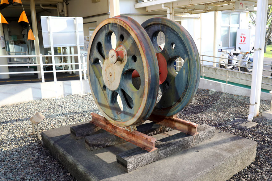 〔 肥薩おれんじ鉄道 出水駅 1番ホームに保存されている「D51の動輪」 R. 5. 4. 2 撮影 〕
