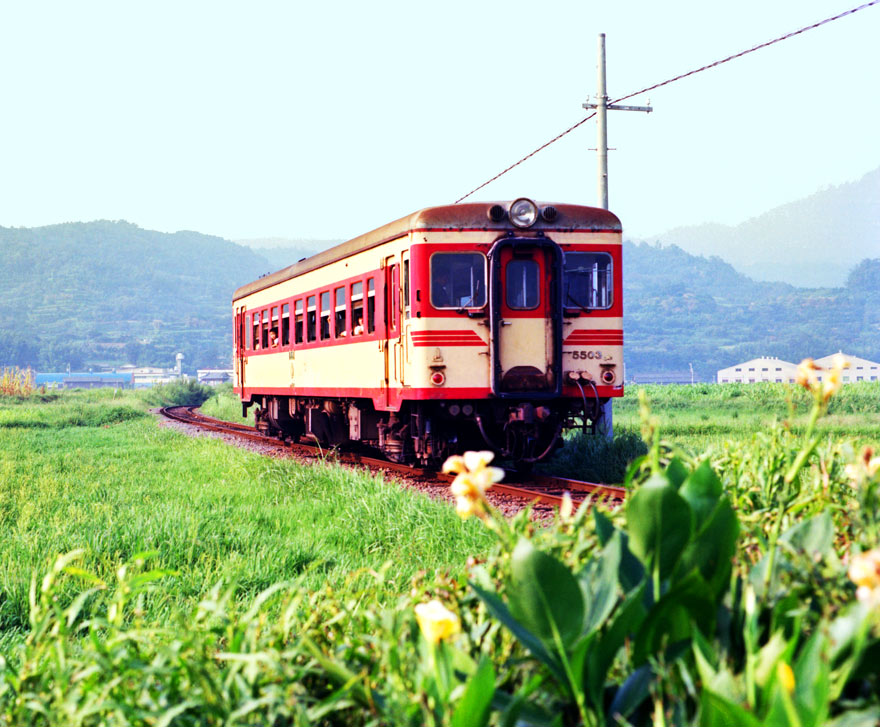〔 島原鉄道 ” キハ55形 キハ5503 ” 国鉄の同型車と識別しやすくするため3本ヒゲ塗装! S. 54. 9. 5 撮影 〕