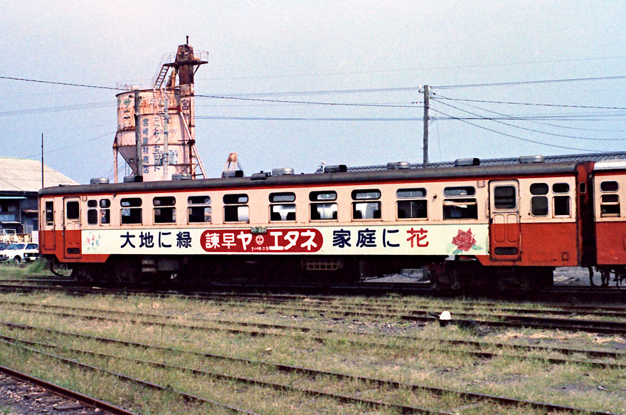 〔 島原鉄道 南島原車庫にて 広告ラッピング車! ” キハ 16形 1605 ” S. 54. 9. 5 撮影 〕