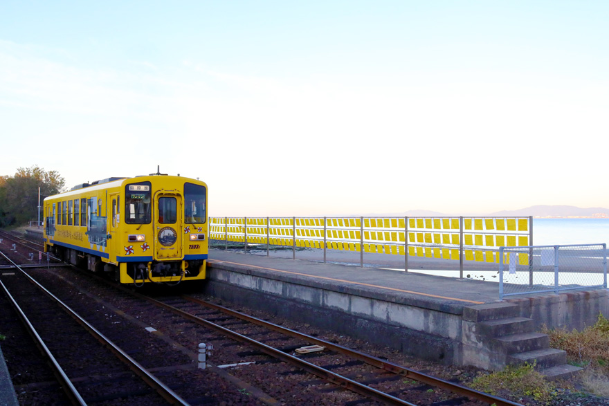 〔 島原鉄道 大三東駅 幸せの「黄色いハンカチ」が映えるホームに到着! キハ2500A形 R. 4. 11. 25 撮影 〕