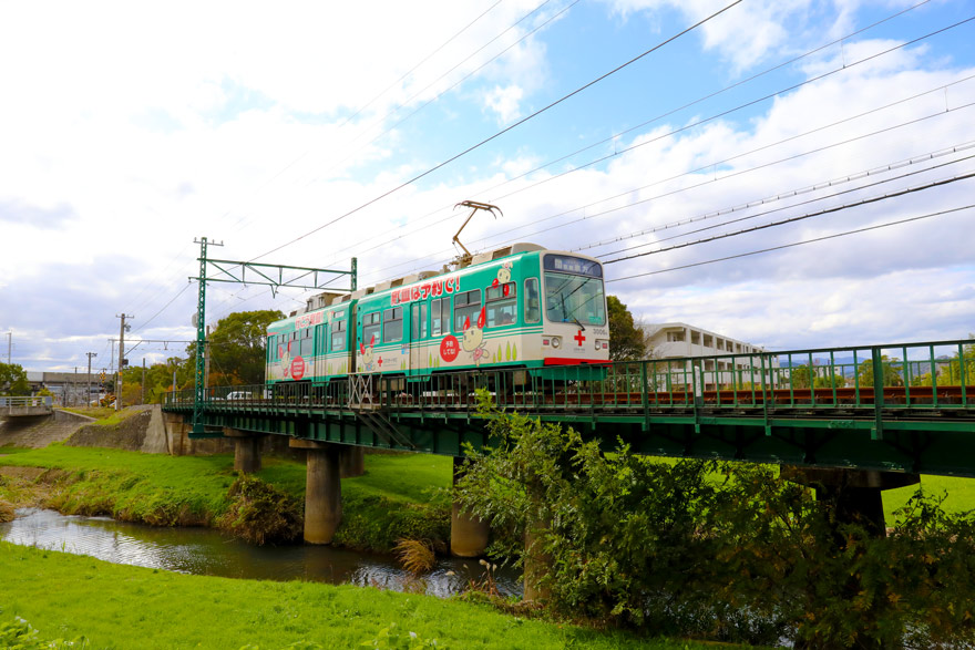 〔 筑豊電鉄 楠橋~新木屋瀬 鉄橋を渡る! 3000形 3006 筑豊直方 行き R. 4. 12. 1 撮影 〕