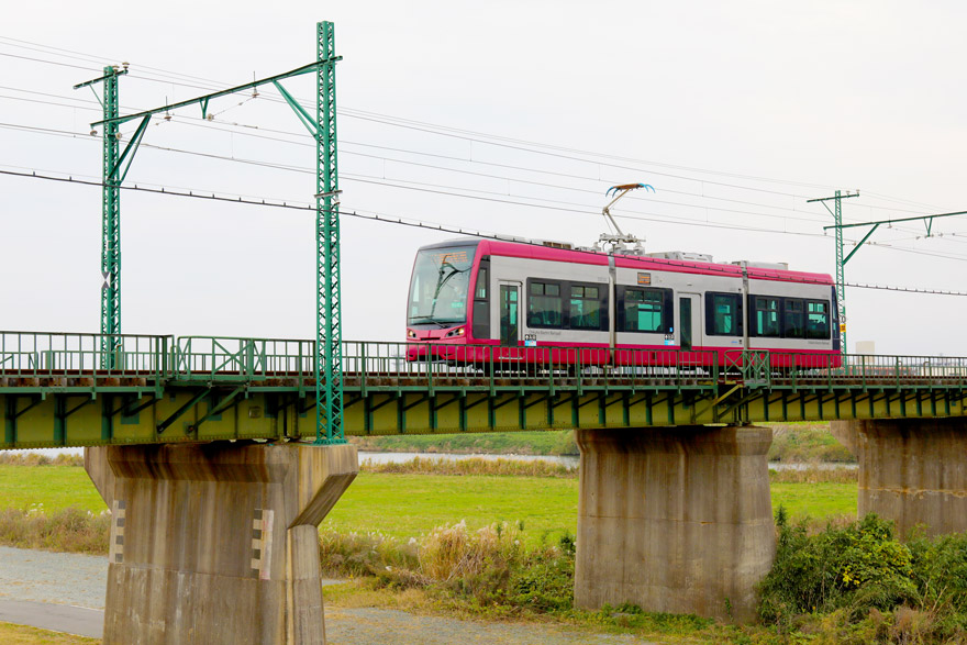 〔 筑豊電鉄 感田~筑豊直方 遠賀川鉄橋を渡る! 5000形 5003〔ピンク〕 黒崎駅前 行き R. 4. 12. 1 撮影 〕