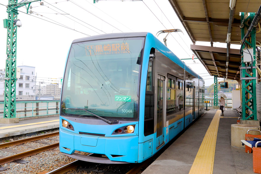 〔 筑豊電鉄 筑豊直方駅で発車を待つ! 5000形 5004 〔ライトブルー〕 黒崎駅前 行き R. 4. 12. 1 撮影 〕