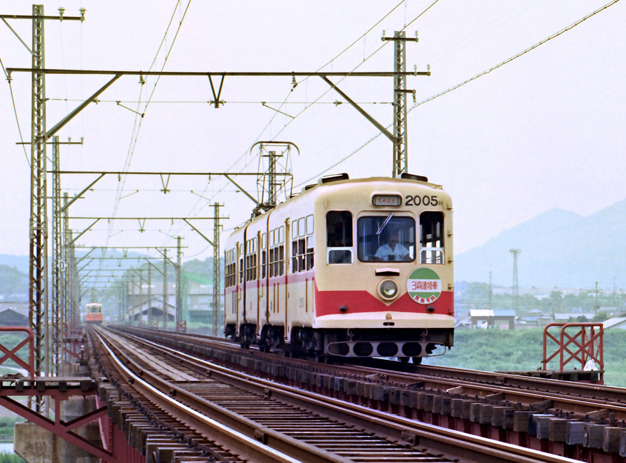 〔 筑豊電鉄 感田~筑豊直方 遠賀川の鉄橋を渡る! 2000形2005 黒崎駅前行き S. 54. 9. 7 撮影 〕