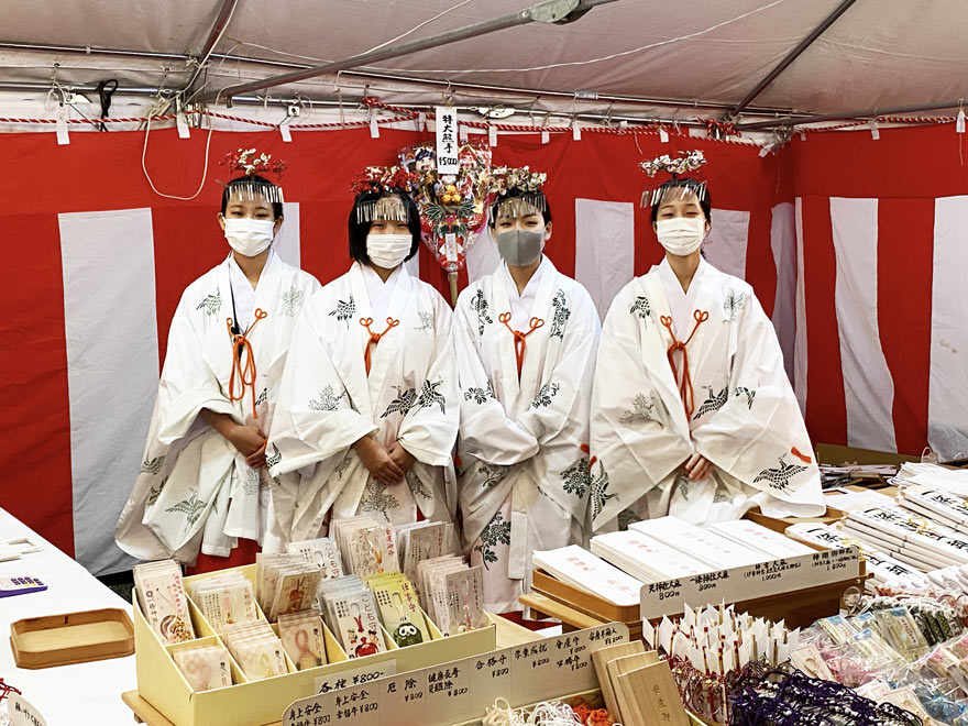 〔 土佐くろしお鉄道 一條神社 お守りや記念品を販売の巫女さん。快く記念写真の1枚に! R.3. 11. 23 撮影 〕