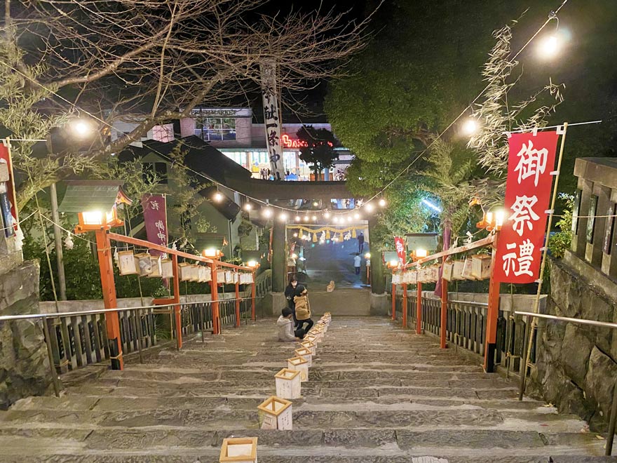 〔 土佐くろしお鉄道 一條神社参拝の後は階段を降り食を求め屋台へ! R.3. 11. 23 撮影 〕