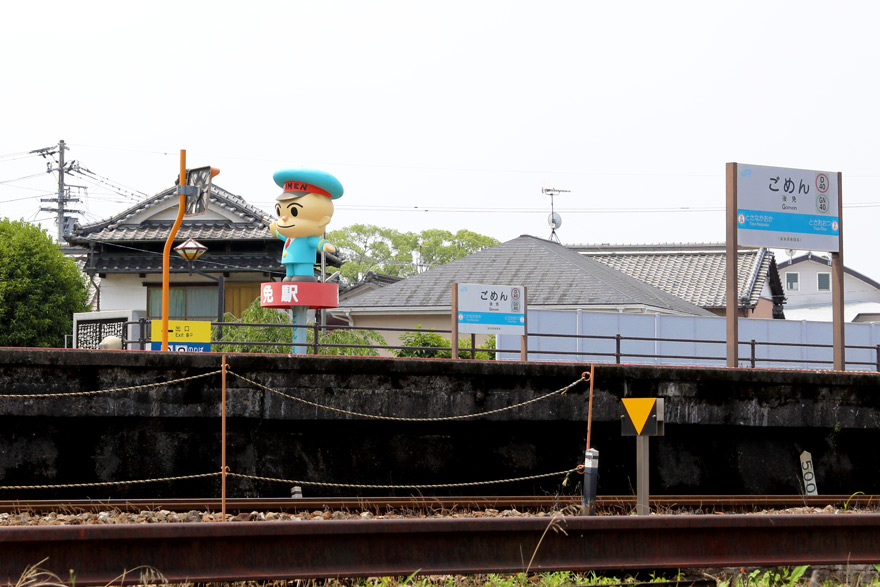 〔 土佐くろしお鉄道 後免駅 0-1番ホーム横に設置の「ごめん えきお君」 やなせたかしさん デザイン! 〕