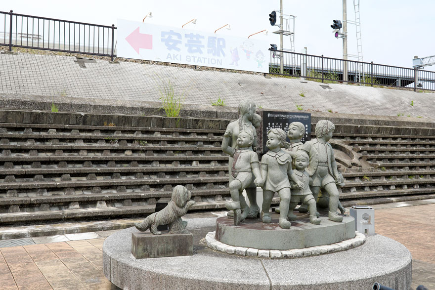 〔 土佐くろしお鉄道 安芸駅 駅前には『靴が鳴る』モニュメントのかわいい子供たちの像がある! R.4. 6. 17 撮影 〕