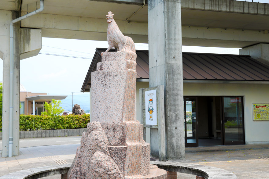 〔 土佐くろしお鉄道 後免町駅 駅前広場に地元南国市の地鶏である「オナガドリ」の石像が設置! R.4. 6 . 17 撮影 〕