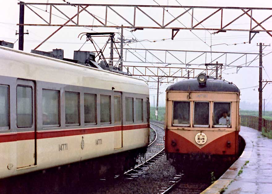 〔 富山地鉄 寺田駅にて ” モハ14771形 ”(左)・” モハ14751形 ”(右) S.50.10 撮影 〕