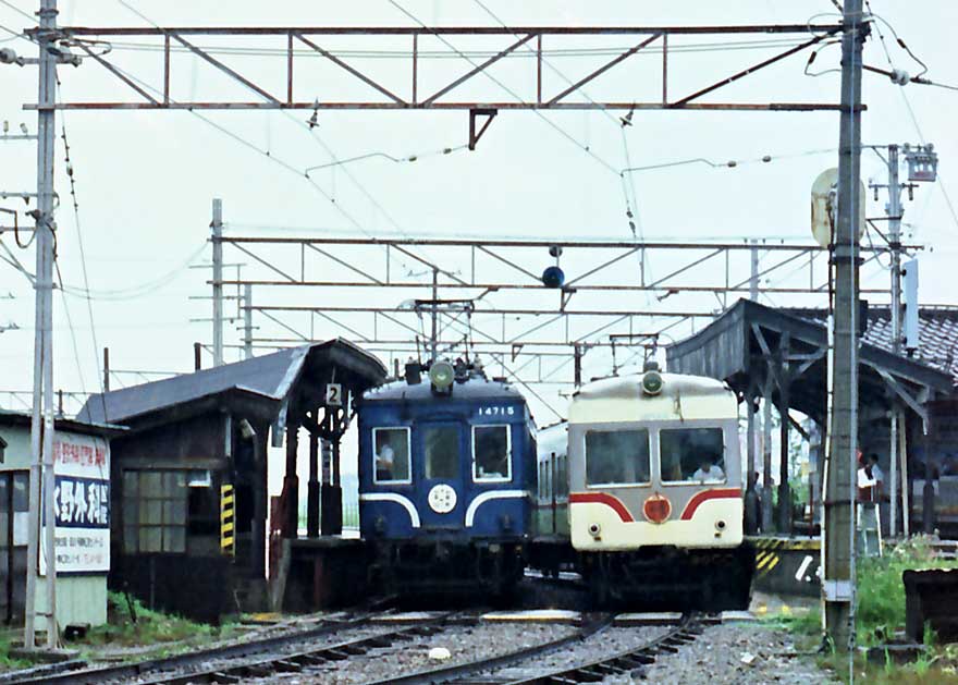〔 富山地鉄 寺田駅にて  モハ14715形(左)・モハ14771形(右)     S.50.10 撮影 〕