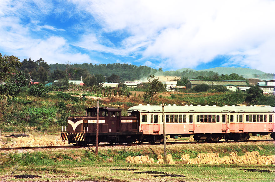 〔 津軽鉄道 深郷田にて ローカルムード溢れる! ” DD350形 ” 牽引の客車 S.53.10 撮影 〕