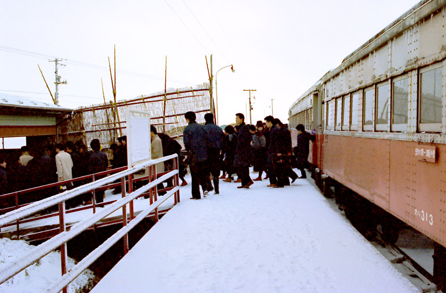 〔 津軽鉄道 五農校前 ” オハ31系 ”より降車 雪の中の通学風景! S.55.12 撮影 〕