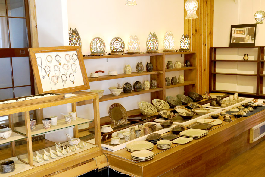 〔「太宰治疎開の家」(旧津島家新座敷) 玄関先にある陶器のギャラリー! R. 7. 2. 8 撮影 〕
