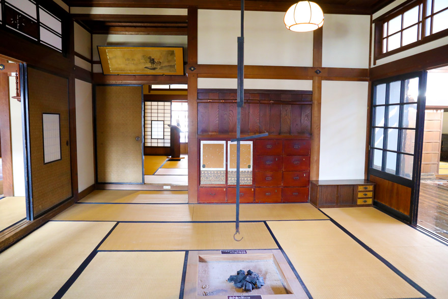 〔 太宰治の生家「太宰治記念館 斜陽館」 畳の間にも炭火の囲炉裏が! R. 7. 2. 8 撮影 〕