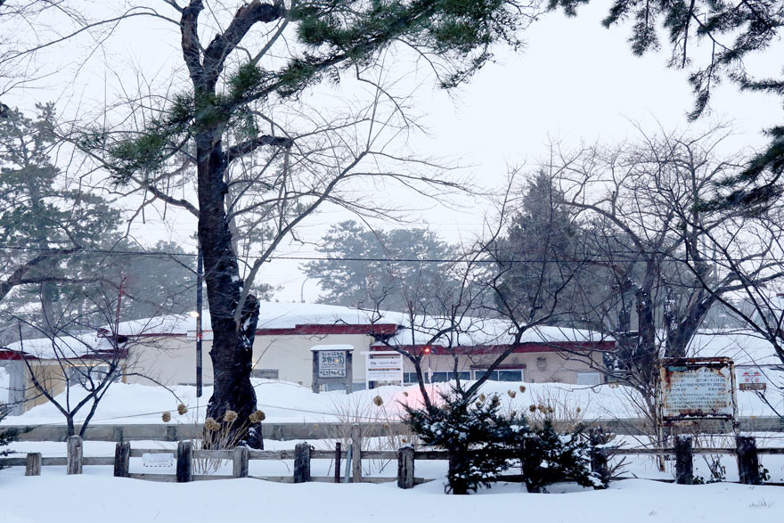 〔 津軽鉄道 県立自然公園から見た! 雪化粧の芦野公園駅! R. 7. 2. 7 撮影 〕