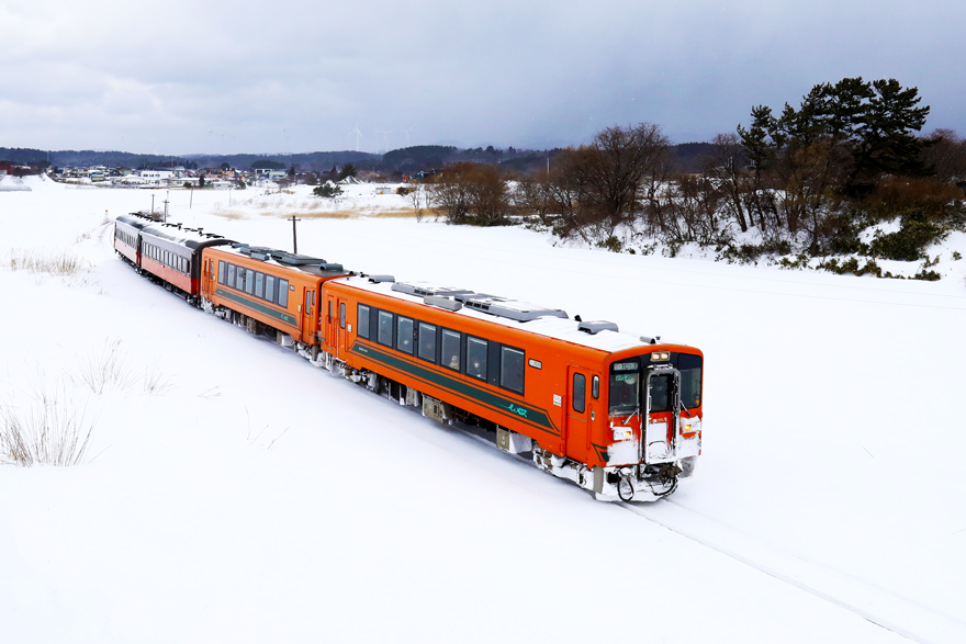 〔 津軽鉄道 大沢内~深郷田 雪の中を往く! 津軽21形 ”走れメロス号” 牽引 「ストーブ列車」 津軽五所川原行 〕