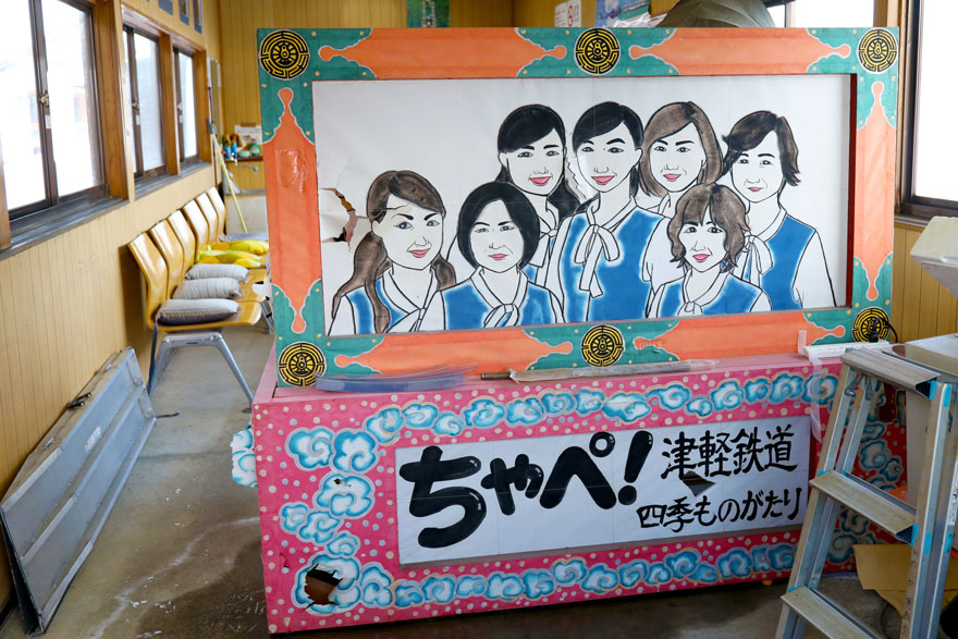 〔 津軽鉄道 津軽五所川原駅 待合室のなかにはイベント用? の沢山のグッズが! R. 7. 2. 8 撮影 〕