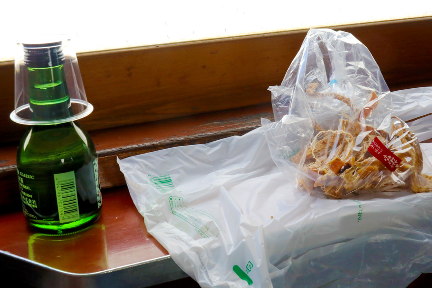 〔 津軽鉄道 「ストーブ列車」 車内販売の ” スルメ ” や ” ストーブ酒 ” を食してご満悦! R. 7. 2. 7 撮影 〕