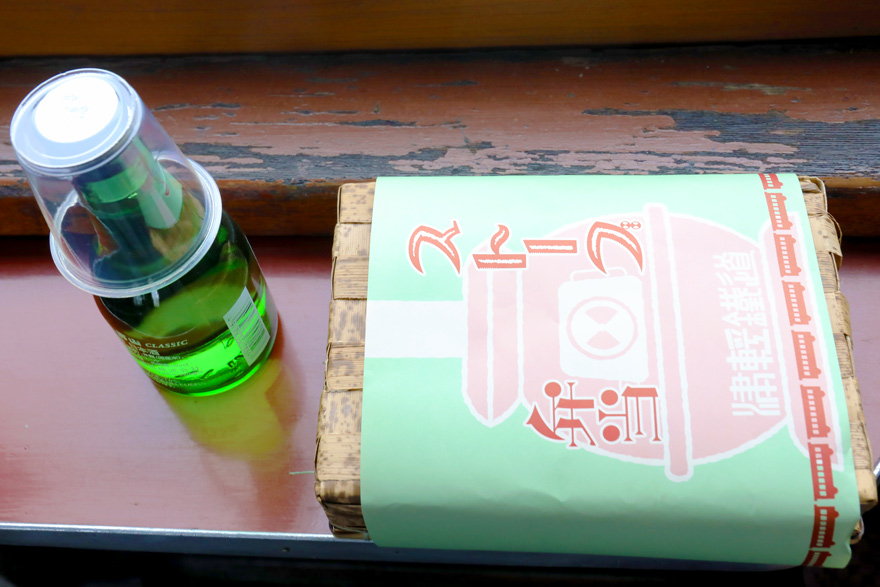 〔 津軽鉄道「ストーブ弁当」 ストーブ列車石炭ストーブがイメージされたイラスト入り包み紙! R. 7. 2. 7 撮影 〕