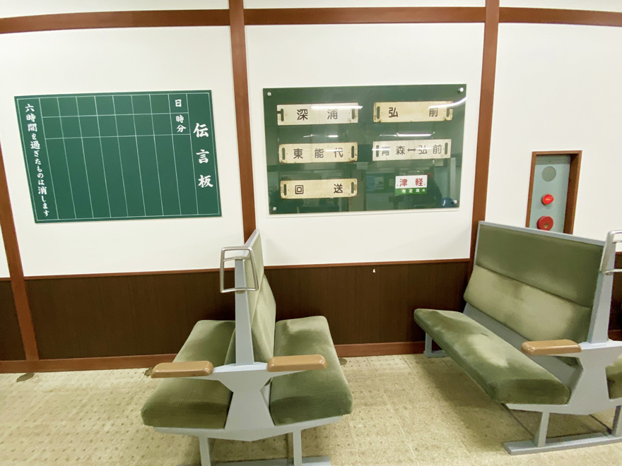 〔 JR 五所川原駅 かつて五能線で活躍した車両の座席に腰を下ろし会話を楽しめます。 R. 7. 2. 6 撮影 〕