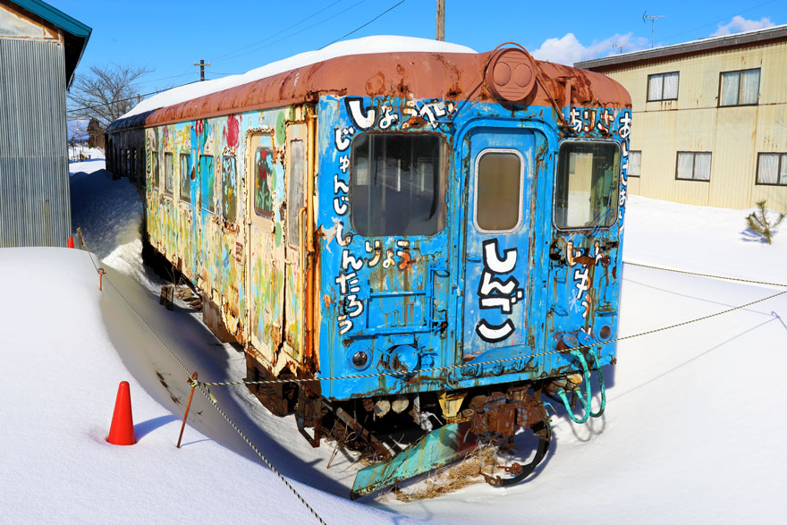〔 津軽鉄道 嘉瀬駅 SMAPの香取慎吾による夢のキャンパス号という企画で「落書き列車」キハ22028 が留置保存! 〕