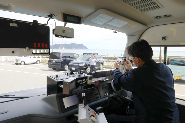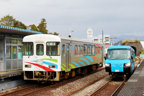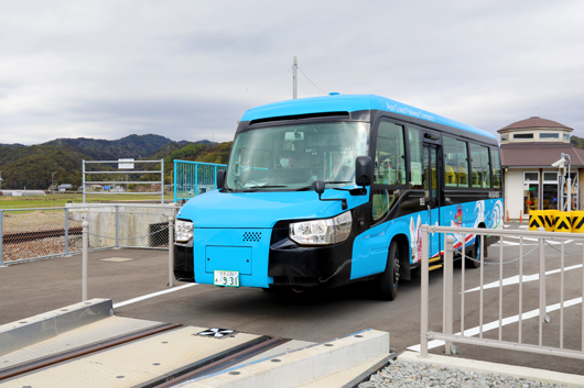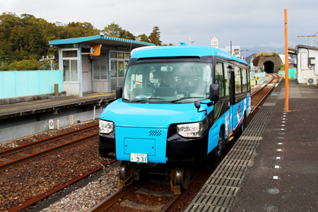 鉄道モードで、再度バスモードになって海の駅東洋町、道の駅宍喰温泉までの区間を往復運行します。