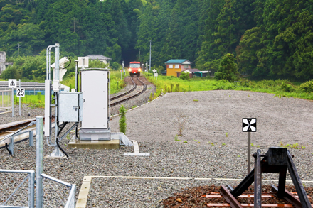 宍喰駅甲浦方に車庫があり、本線から引き上げ線へ分岐