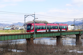 日野川にかかる鉄橋を渡る! レトラム 田原町行き