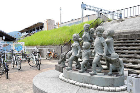 アンパンマンの石像と後免駅の歌である「ごめん駅でごめん」