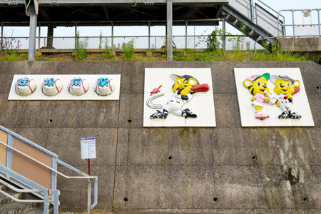 このキャラクターのモニュメントは西側道路沿いに設置されている。
