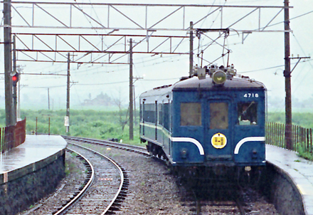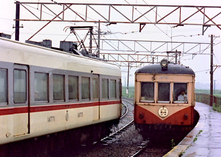モハ14718-クハ18は、高運転台仕様で前面窓が小窓化さ