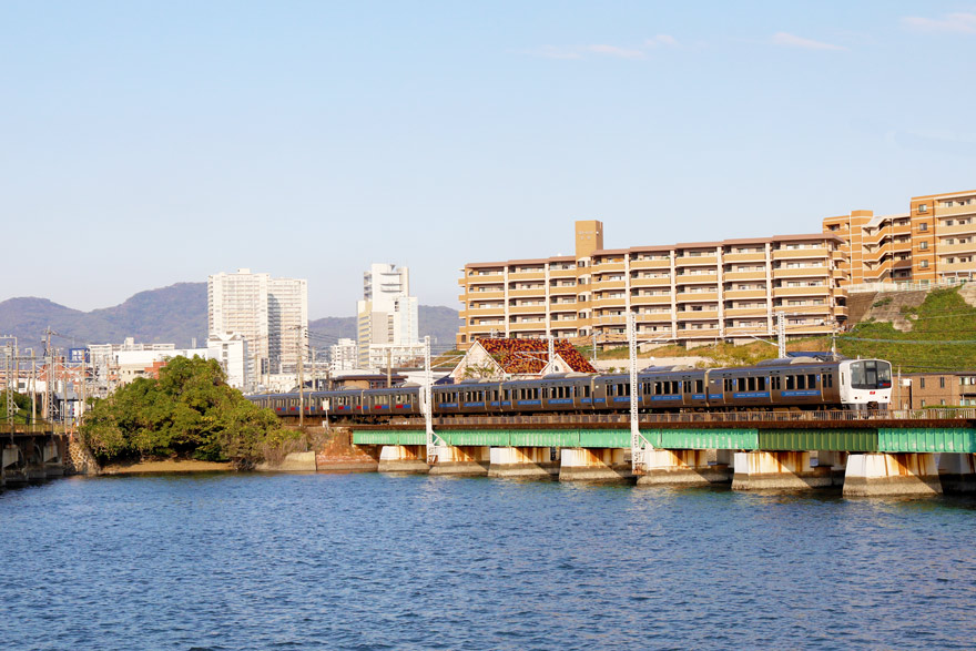 〔 JR鹿児島本線 多々良川橋梁を渡る! 811系 (リニューアル車) 久留米行き R. 4. 11. 18 撮影 〕