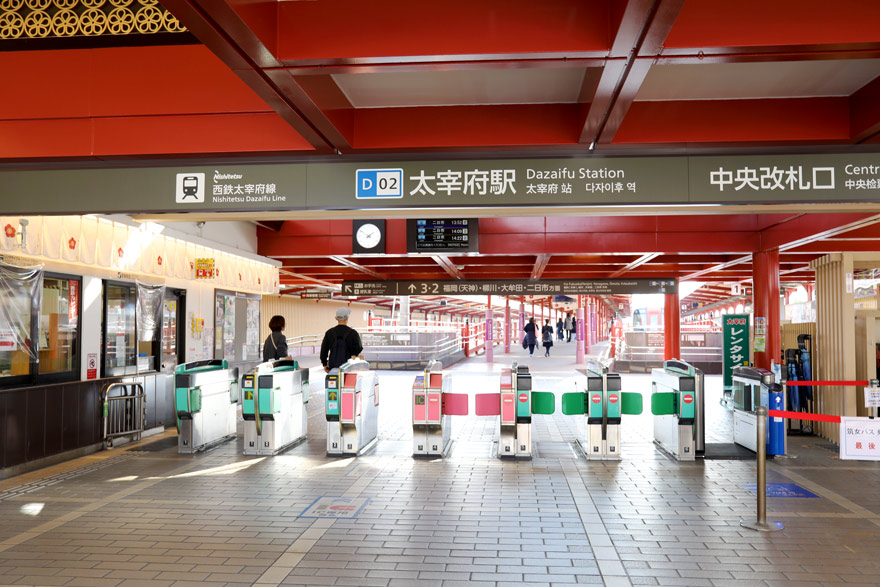 〔 太宰府線 太宰府駅 中央改札口からホームを臨む!駅舎内も太宰府天満宮の様相です。 R. 4. 11. 18 撮影 〕