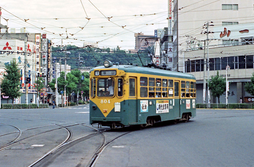 〔 鹿児島市電 高見馬場電停付近にて 谷山行き ” 800形 804 ” S.54.9.3 撮影 〕