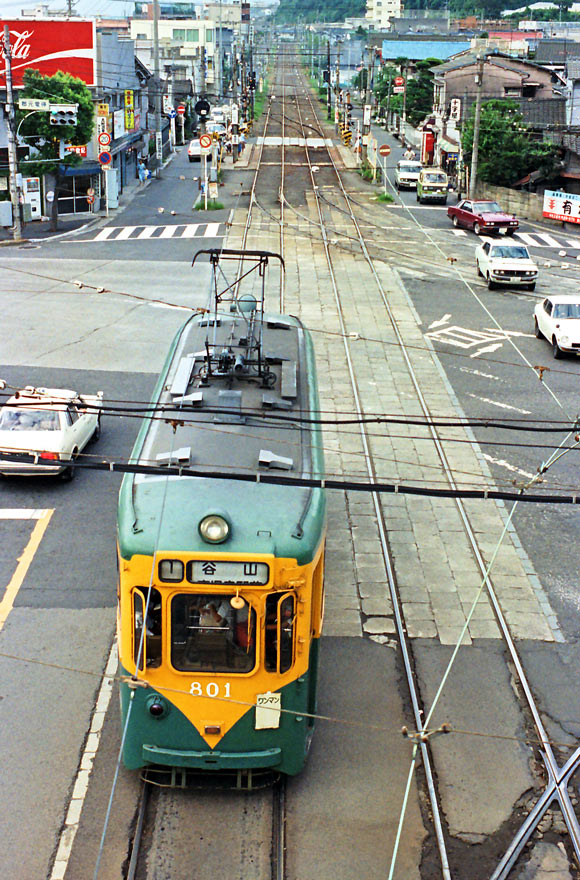 〔 鹿児島市電 郡元電停前交差点にて 谷山行き ” 800形 801 ” S.54.9.3 撮影 〕