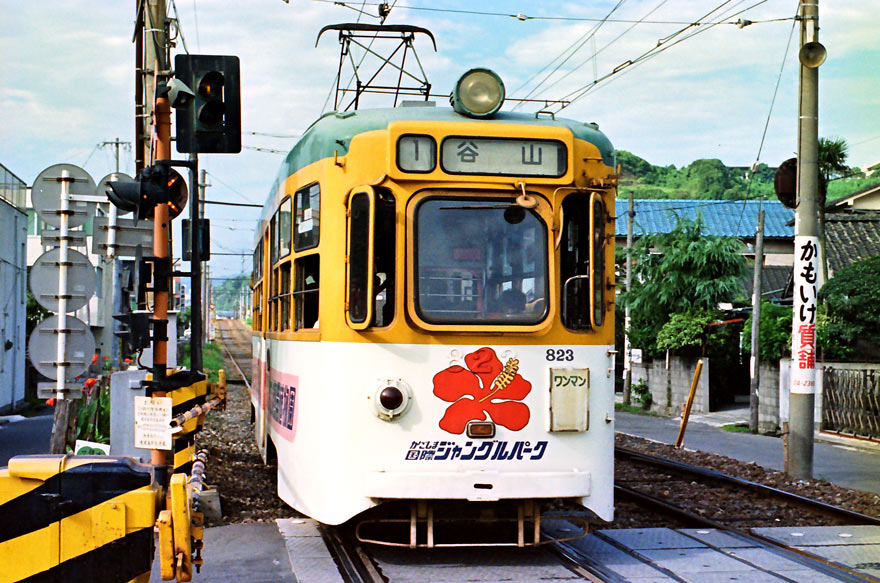 〔 鹿児島市電 郡元電停付近にて 谷山行き ” 800形 823 ” S.54.9.3 撮影 〕