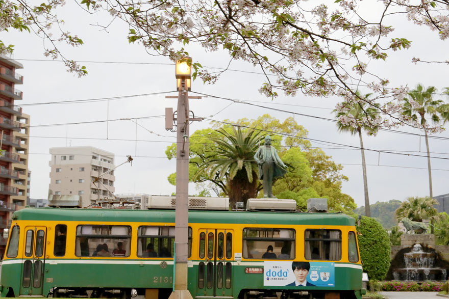 〔 鹿児島市電 高見橋~鍛治屋町 大久保利通像の前を往く! 2130形 2131 R. 5. 4. 5 撮影 〕