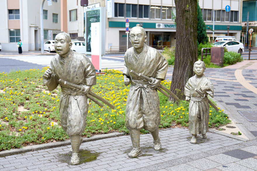 〔 鍛冶屋町交差点 錦江湾にイギリス艦隊が現れ駆けつけている、大山巌、西郷従道、山本権兵衛の銅像! 〕